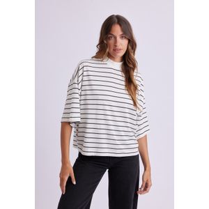 REMERA MANGA 3/4 CUELLO ALTO RAYADA ROSA