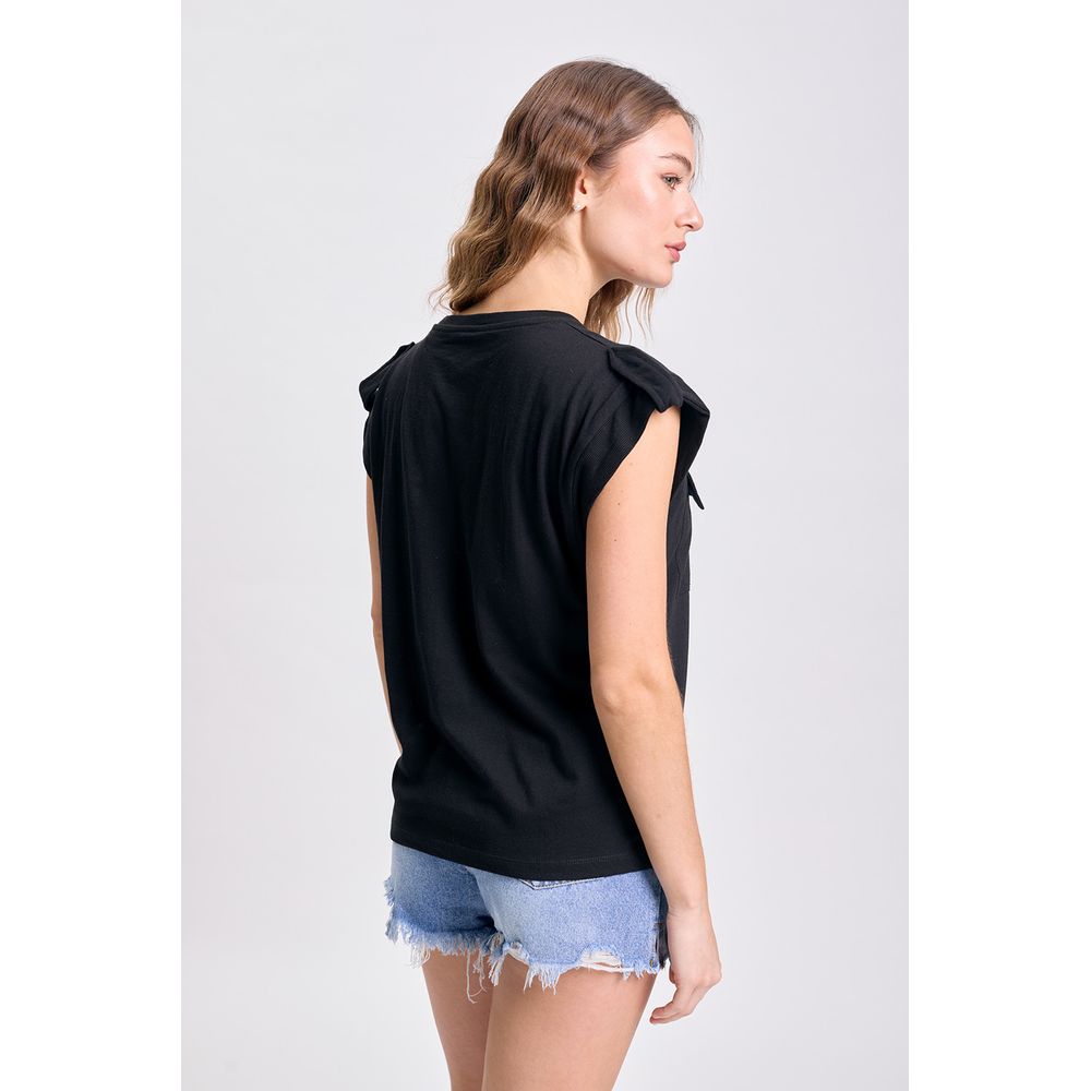 CAMISETA MANGA CORTA NUDO EN HOMBRO NEGRO