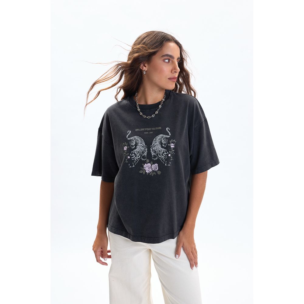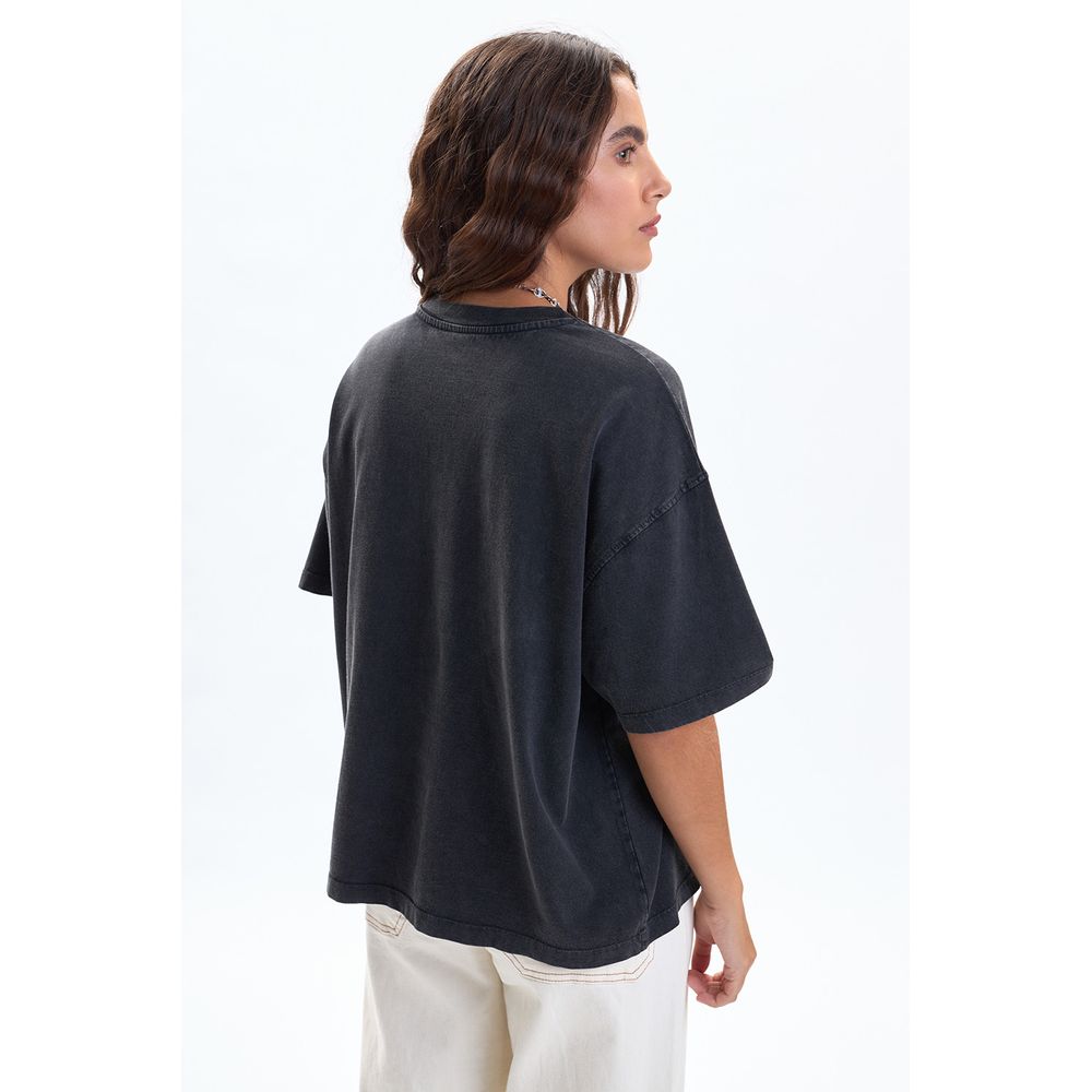 REMERA MANGA CORTA LAVADA BORDADO ESTRELLA NEGRO