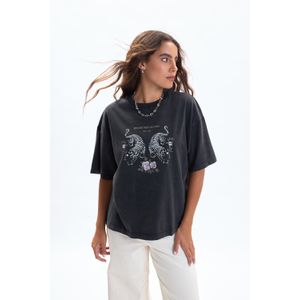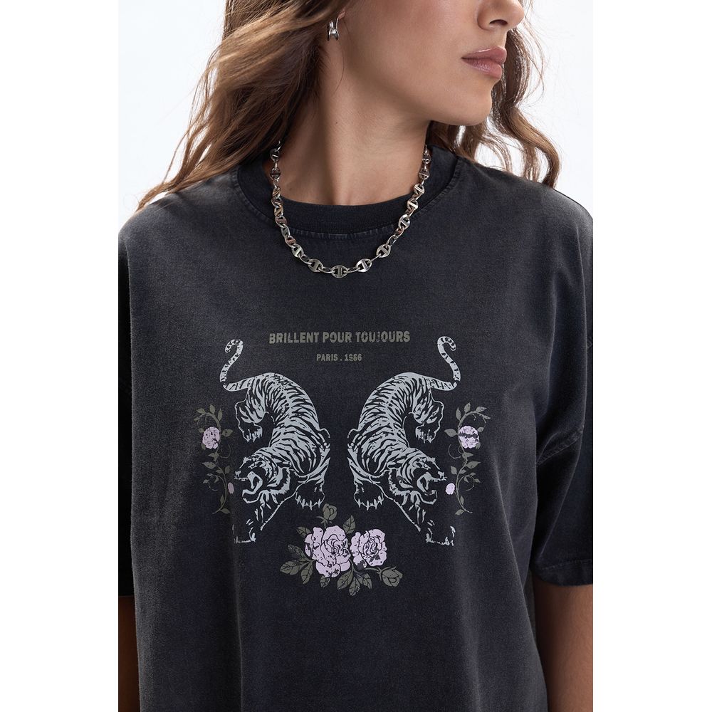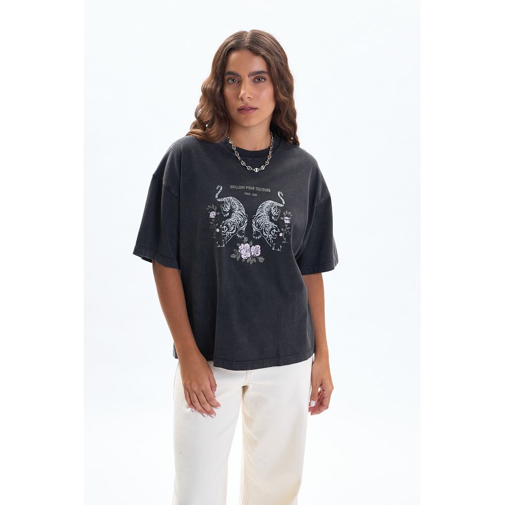 REMERA OVERSIZE ESTAMPA CONEJO GRIS OSCURO