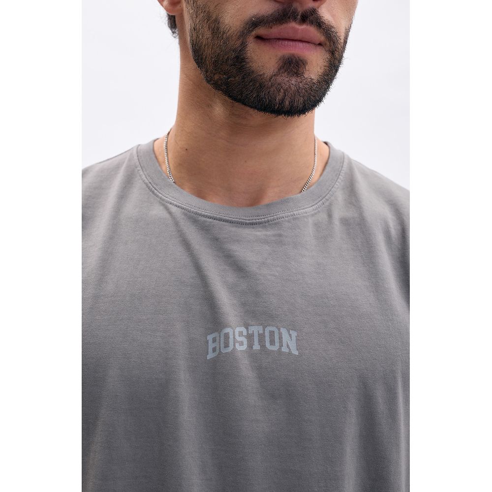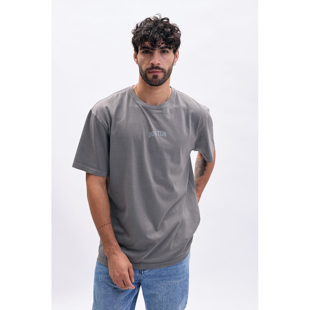REMERA MANGA CORTA ESTAMPA BOSTON GRIS OSCURO