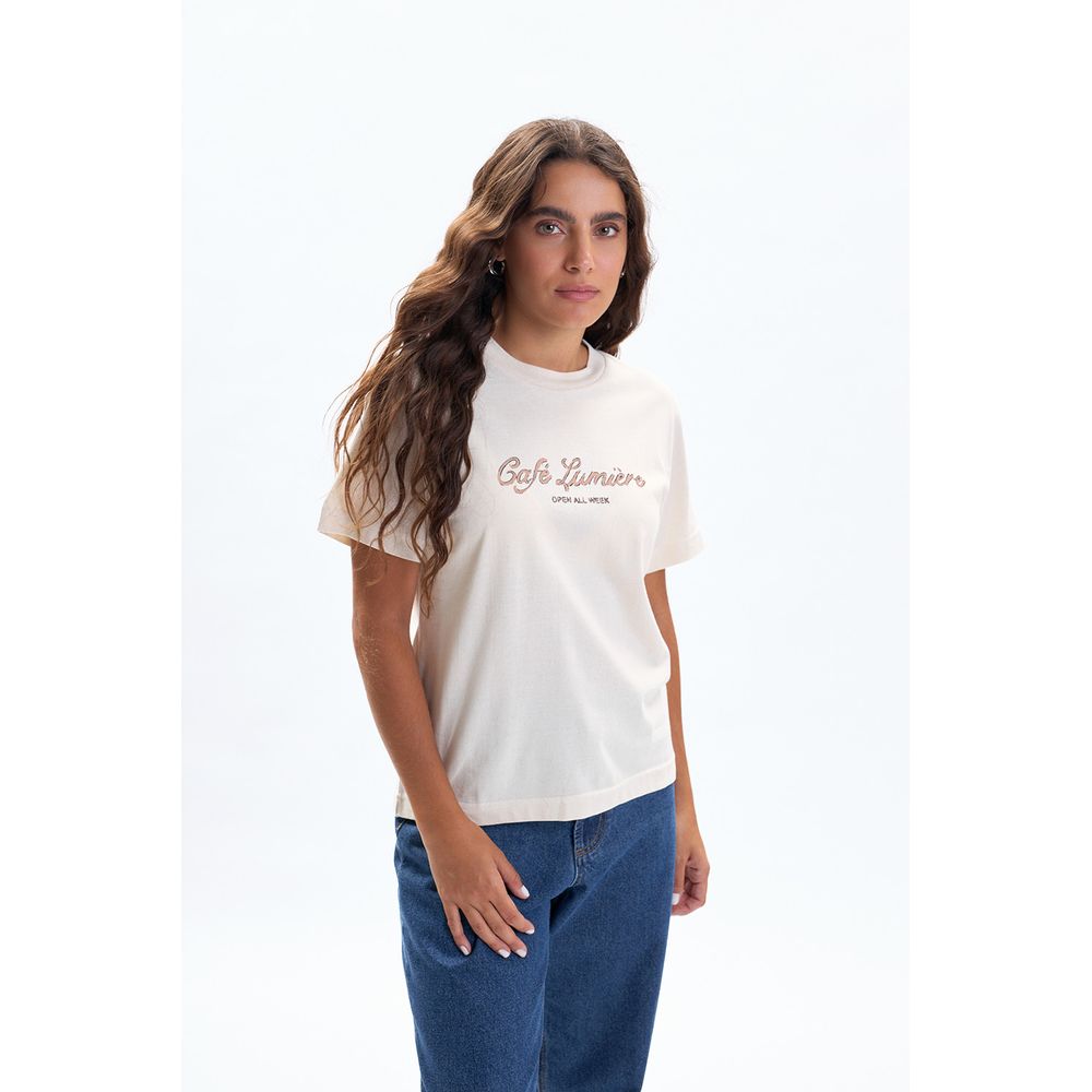 REMERA MANGA CORTA APLIQUES BEIGE