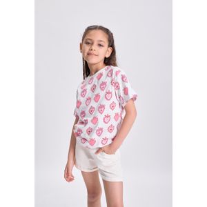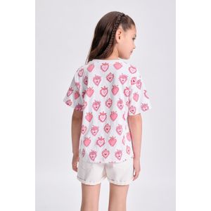 REMERA MANGA CORTA ESTAMPA FRUTILLAS CELESTE