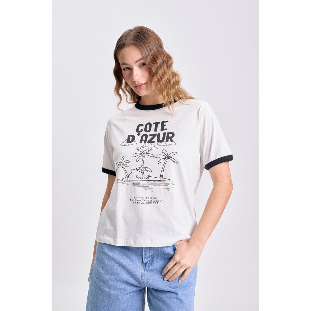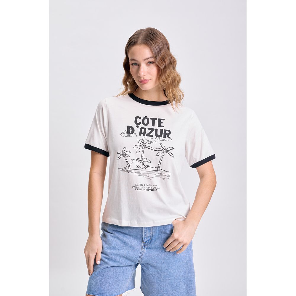 REMERA MANGA CORTA ESTAMPA COSTA AZUL CRUDO