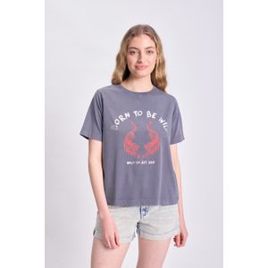 REMERA OVERSIZE LAVADA ESTAMPA NO FEARS GRIS OSCURO