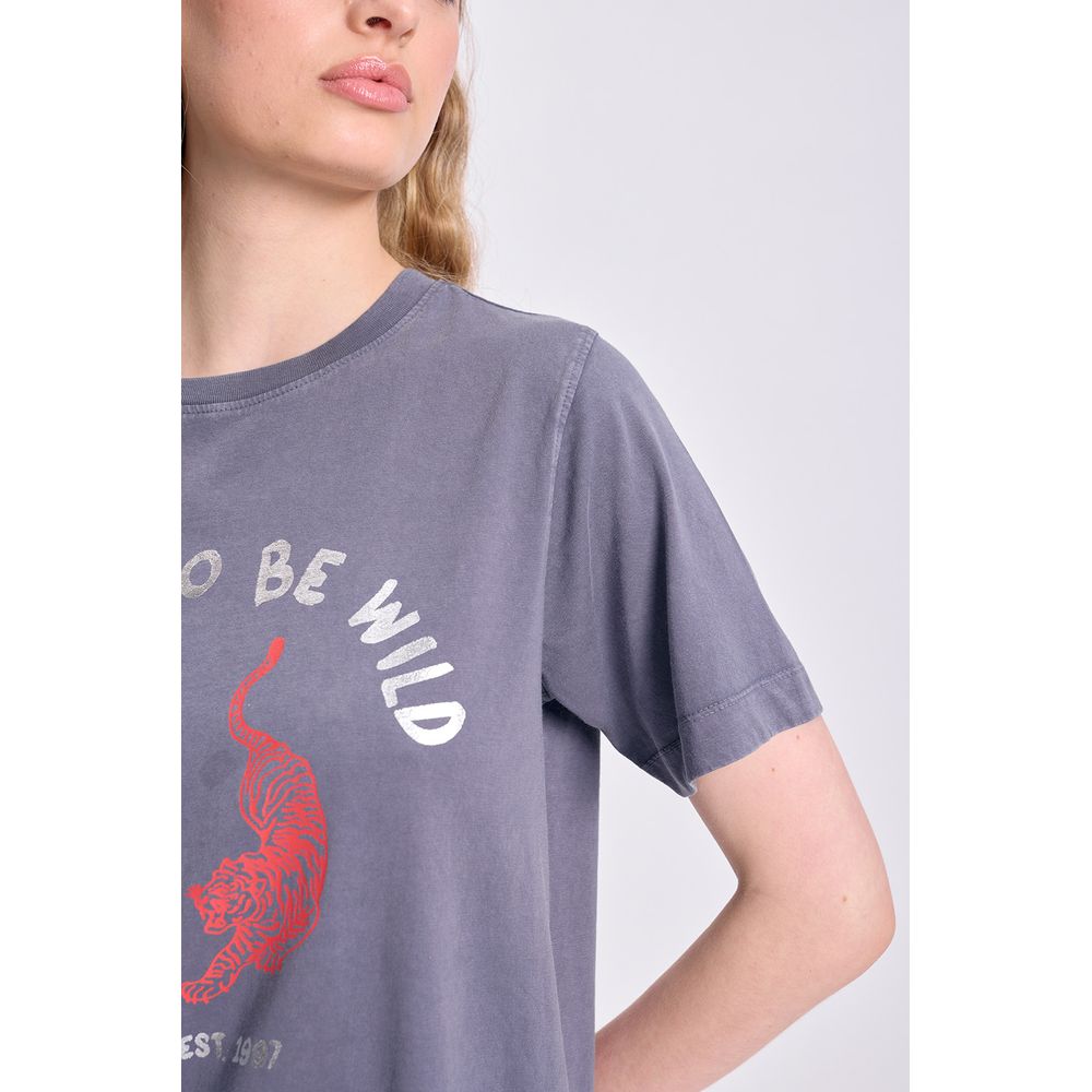 REMERA BORDADA TROPICAL MOOD GRIS OSCURO