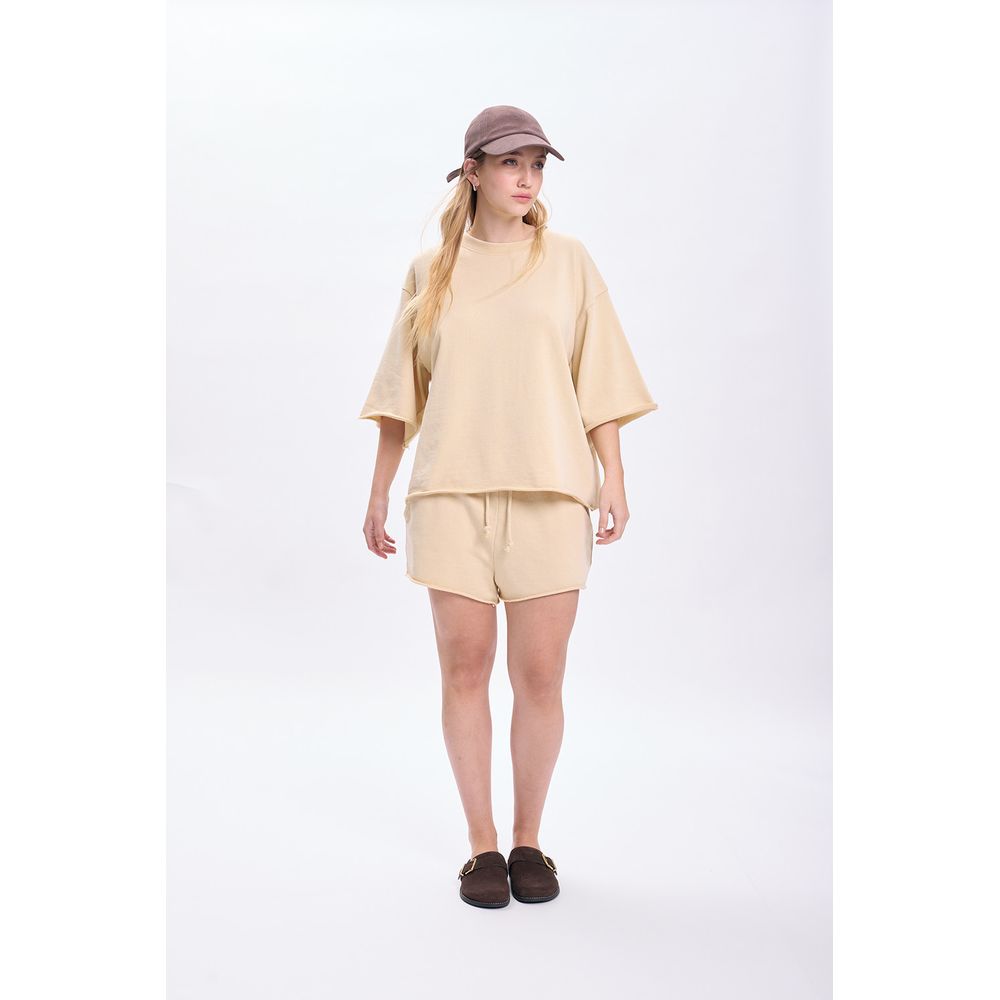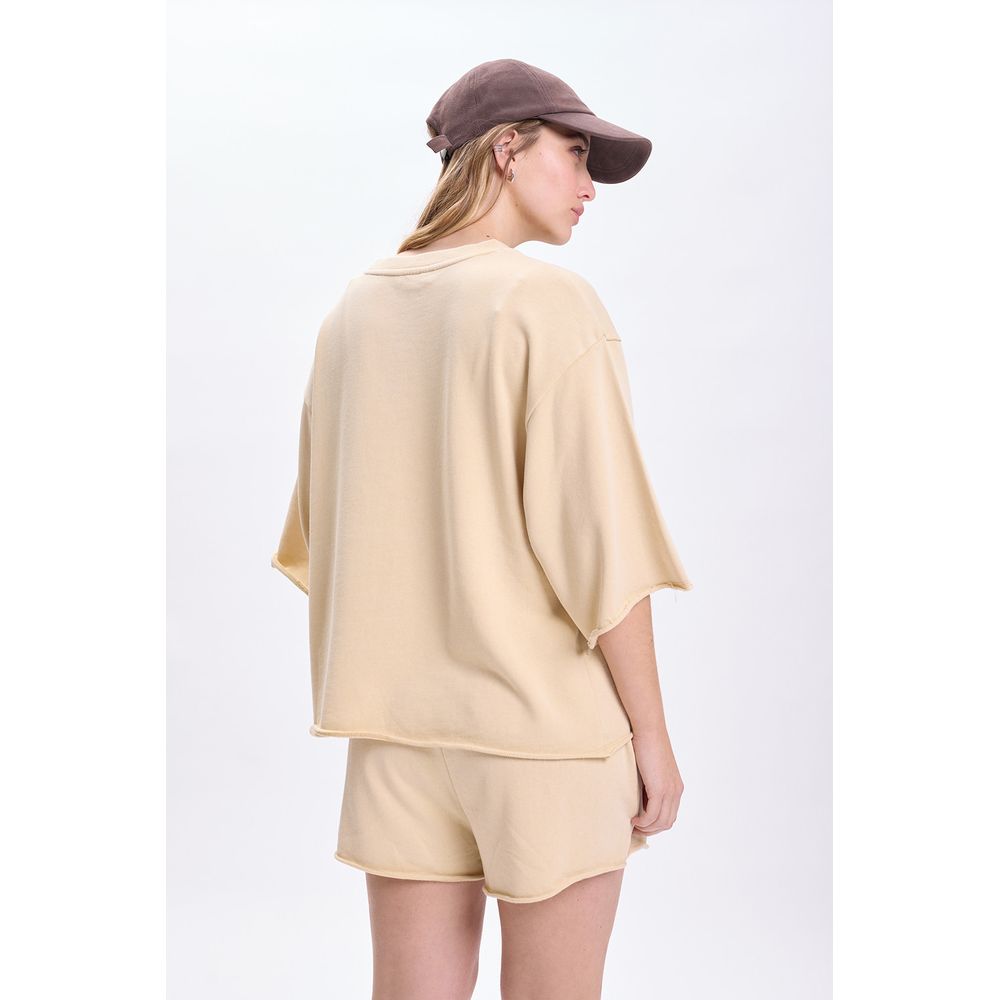 REMERA MANGA CORTA APLIQUES BEIGE
