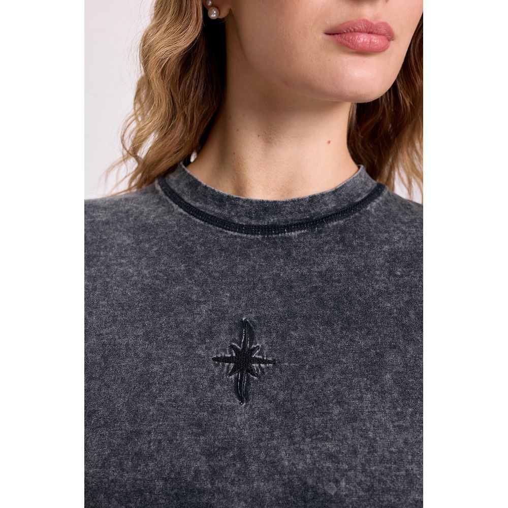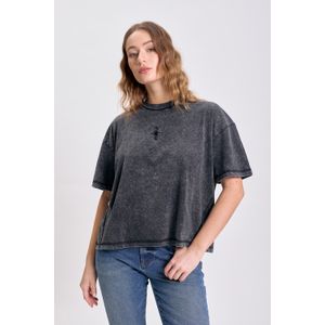 REMERA MANGA CORTA LAVADA BORDADO ESTRELLA NEGRO
