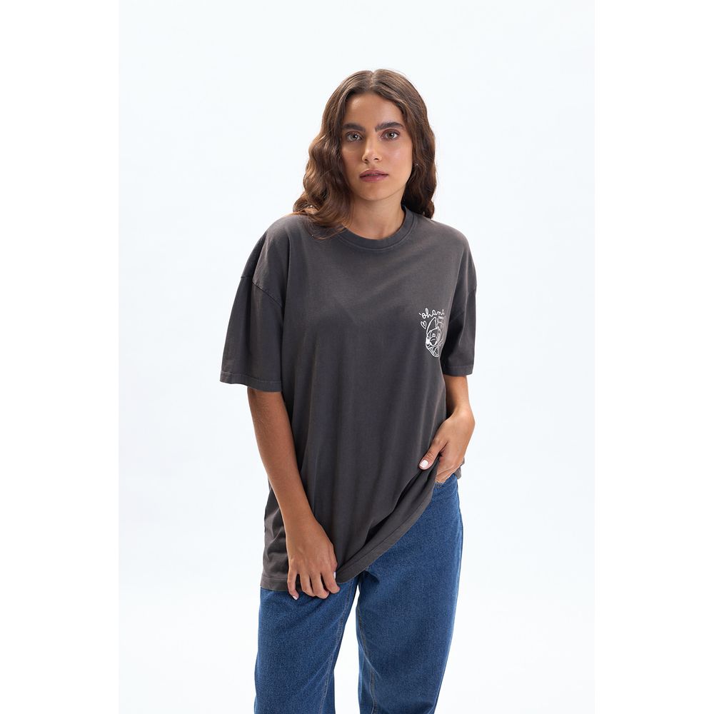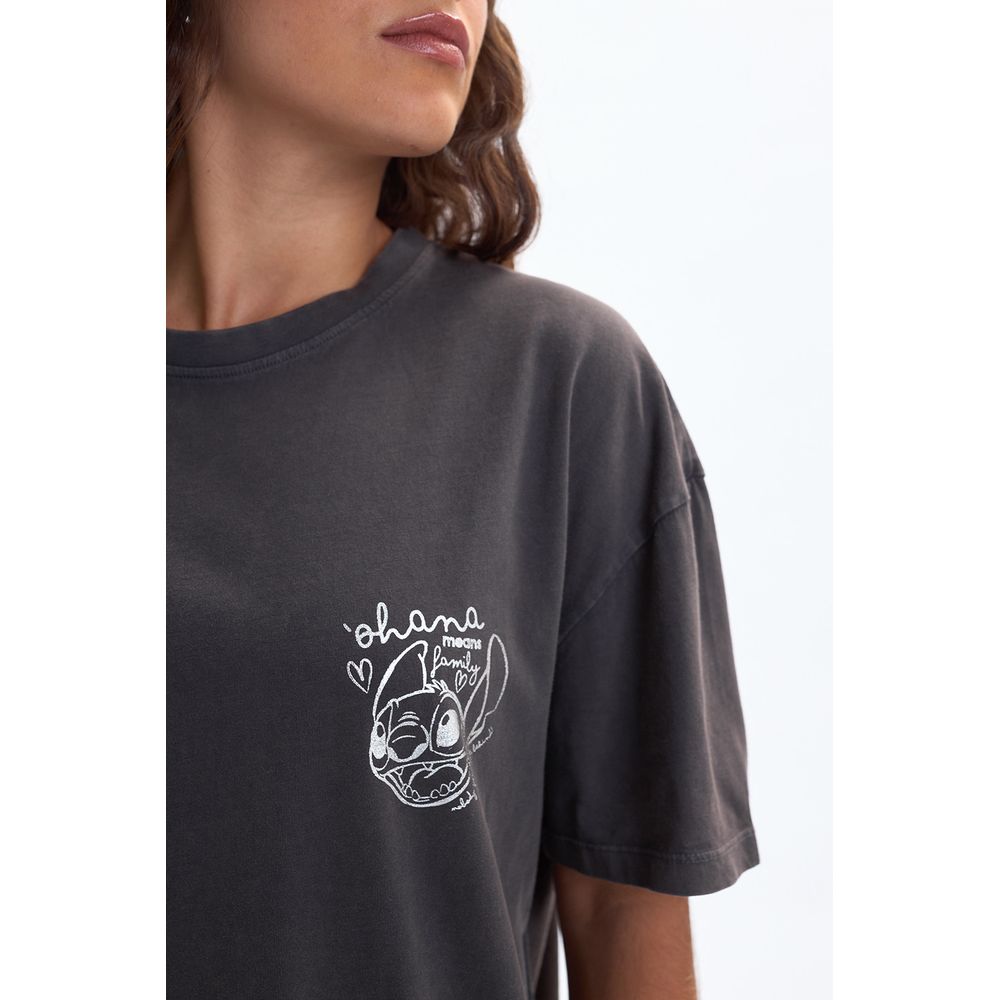 REMERA MANGA CORTA LAVADA BORDADO ESTRELLA NEGRO