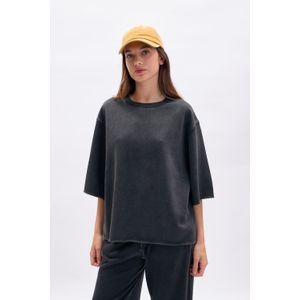 REMERA MANGA CORTA LAVADA BORDADO ESTRELLA NEGRO