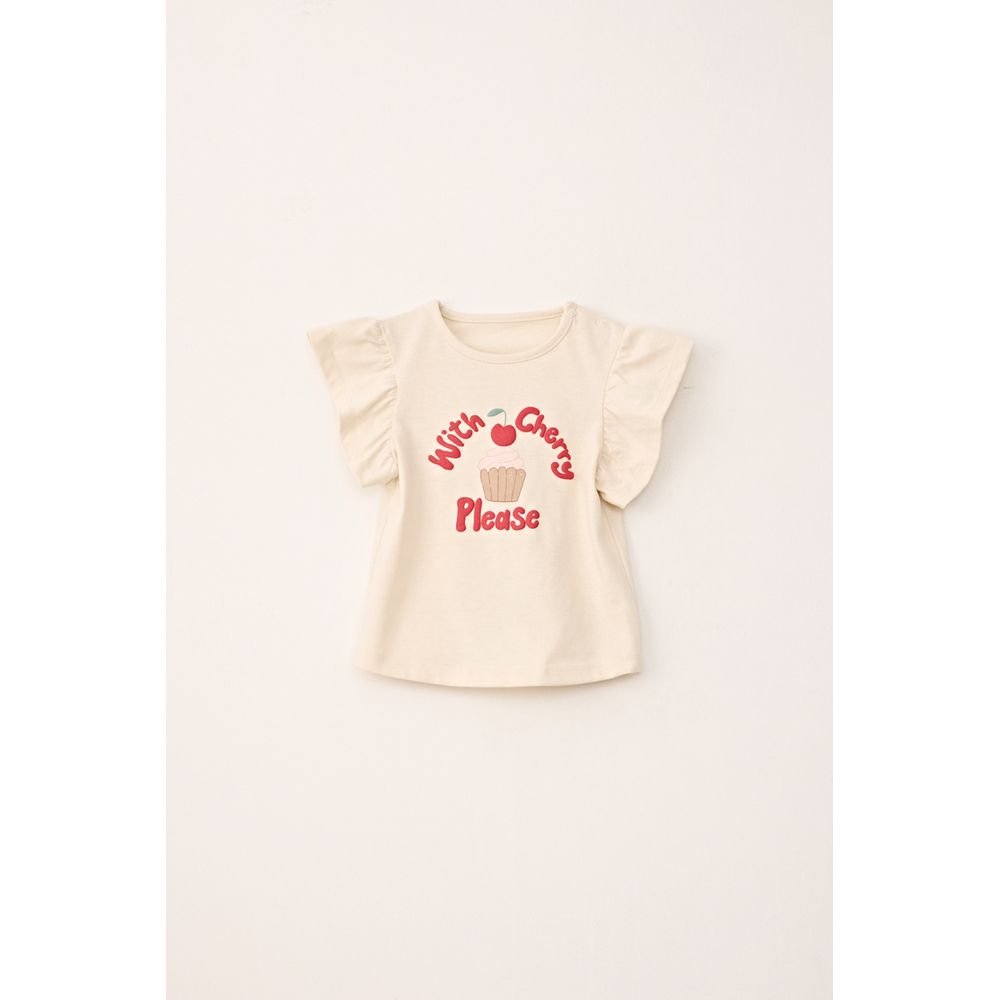 REMERA MANGA CORTA VOLADOS ESTAMPA WITH CHERRY PLEASE CRUDO