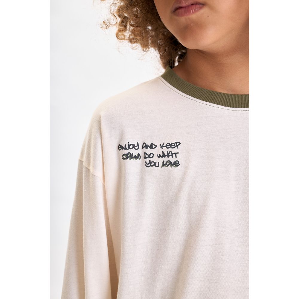 REMERA MANGA LARGA ESTAMPA CONTRASTE PESPUNTE BLANCA