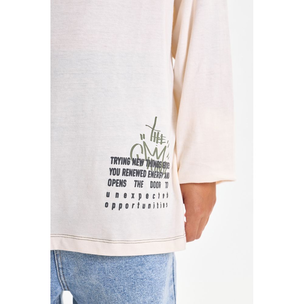 REMERA MANGA LARGA ESTAMPA MICKEY BON VOYAGE BEIGE