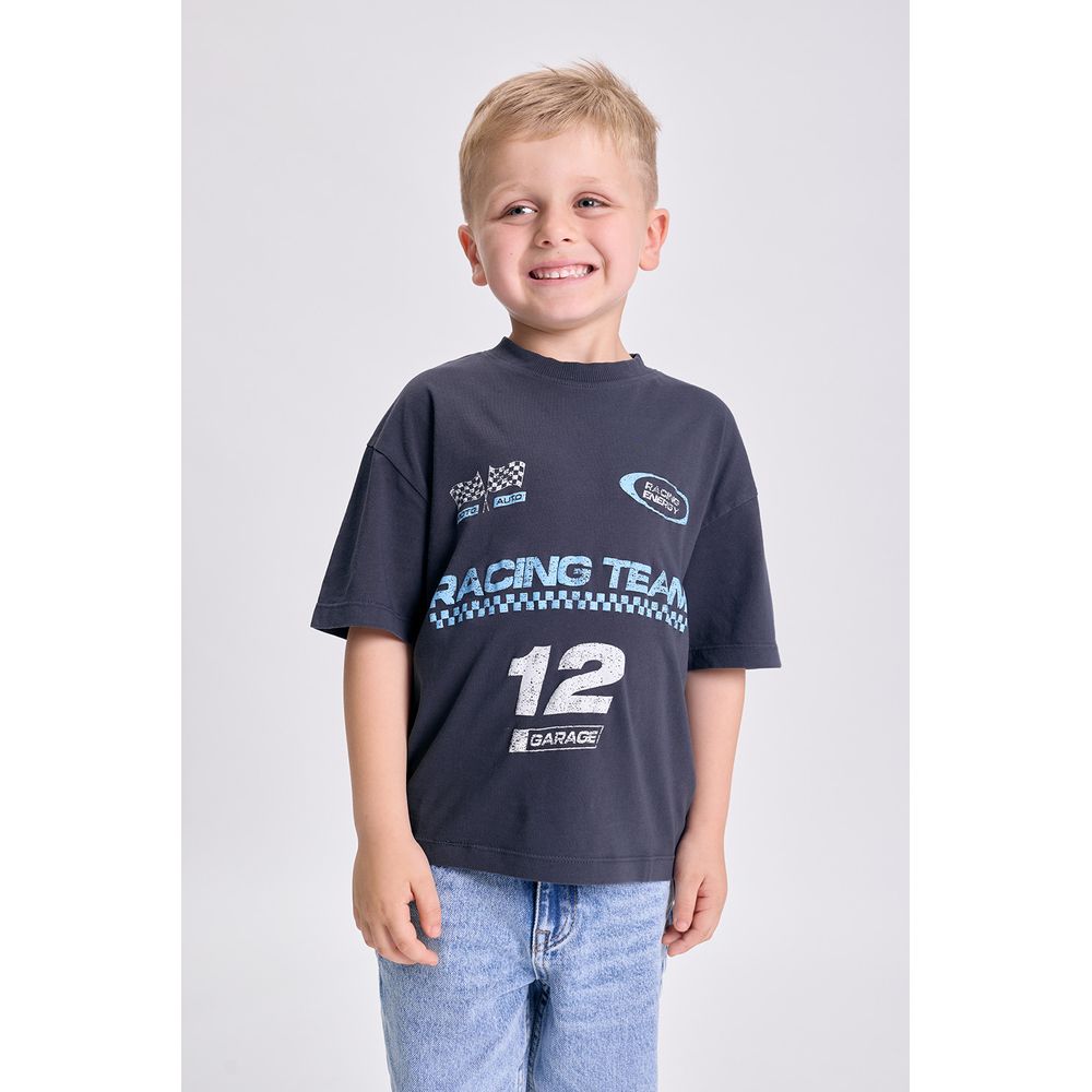 REMERA MANGA LARGA ESTAMPA RACING TEAM GRIS OSCURO