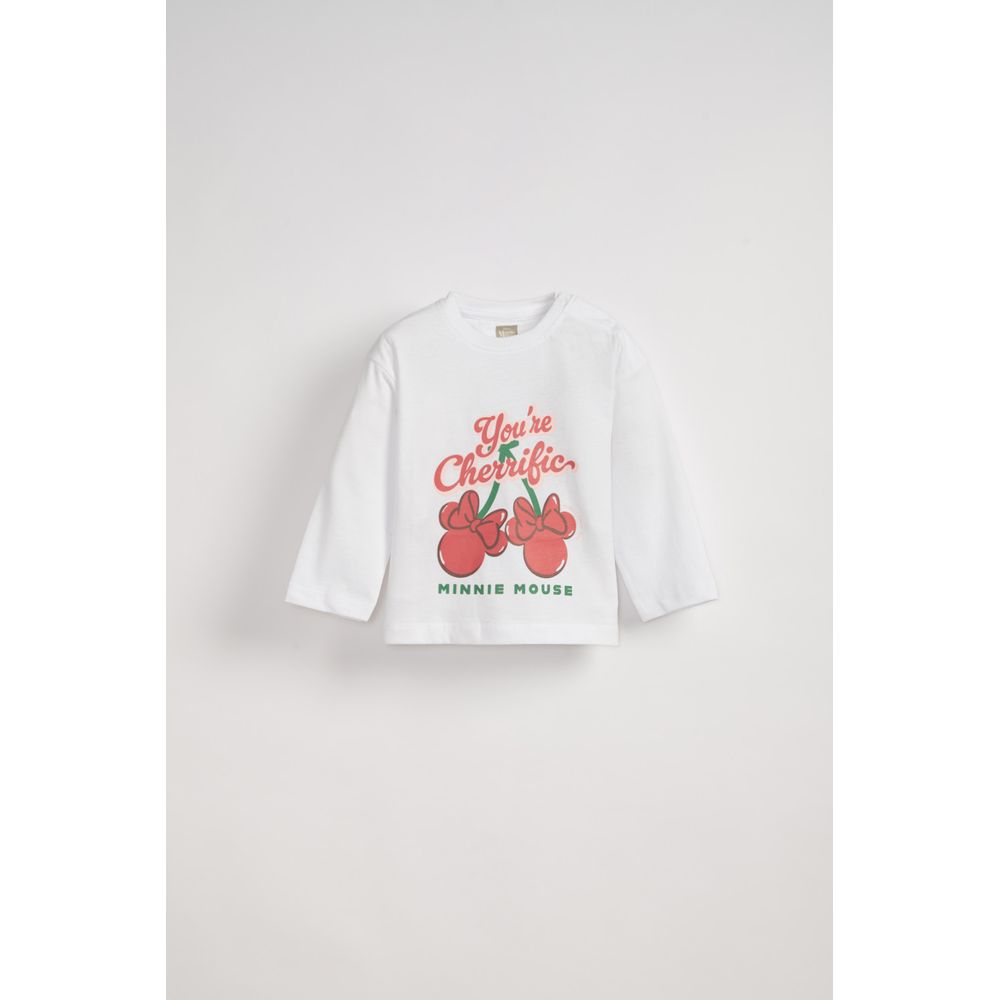 REMERA MANGA CORTA ESTAMPA RAYAS MINNIE CRUDO