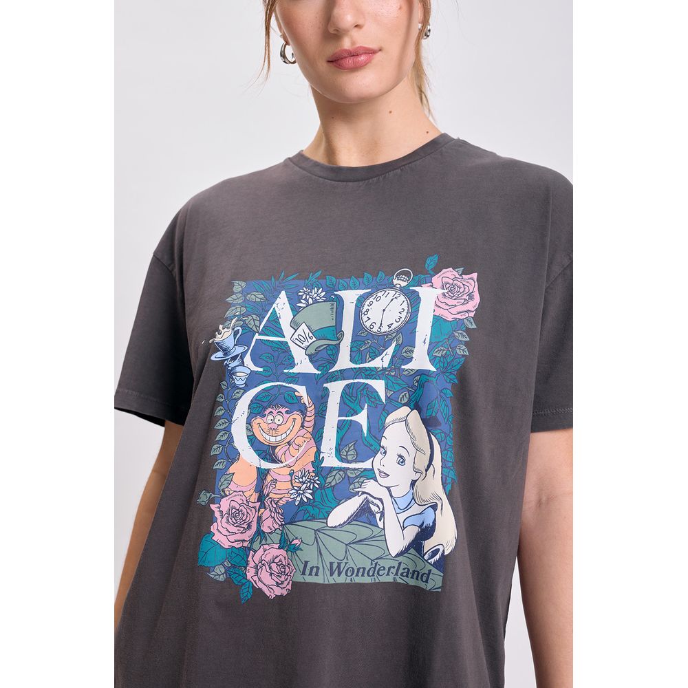 REMERA OVERSIZE ESTAMPA CONEJO GRIS OSCURO
