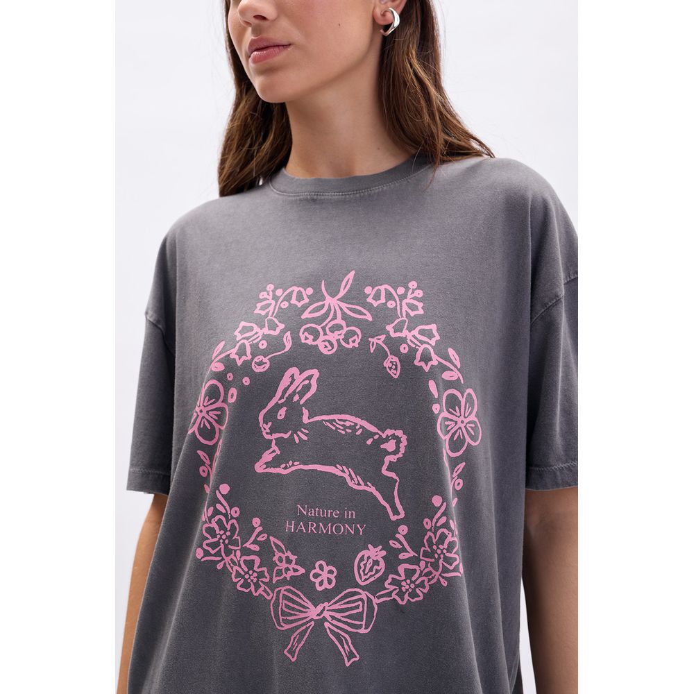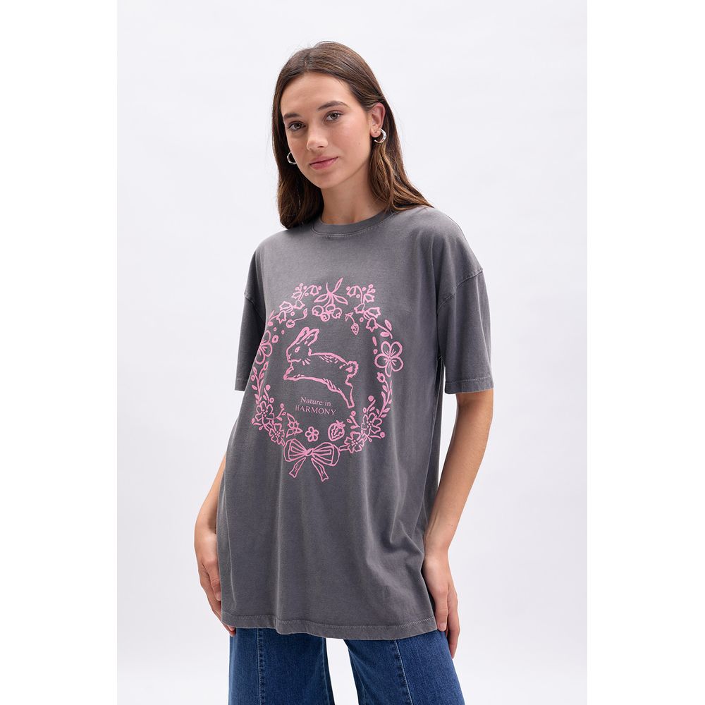 REMERA OVERSIZE ESTAMPA CONEJO GRIS OSCURO