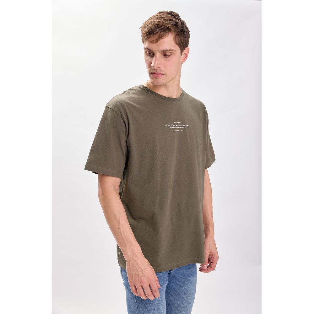 REMERA LAVADA CON BORDADO SOL VERDE MILITAR