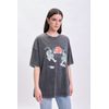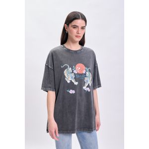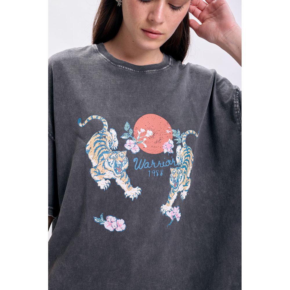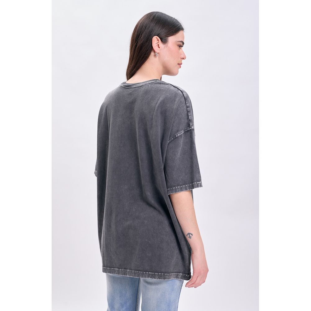 REMERA OVERSIZE LAVADA ESTAMPA NO FEARS GRIS OSCURO
