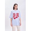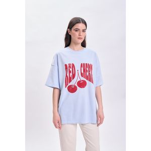 REMERA OVERZISE ESTAMPA CHERRY CELESTE