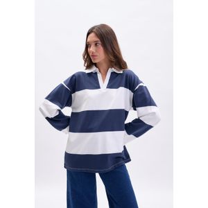 REMERA MANGA 3/4 CUELLO ALTO RAYADA ROSA