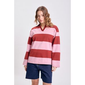 REMERA MANGA 3/4 CUELLO ALTO RAYADA ROSA