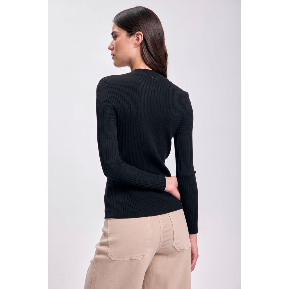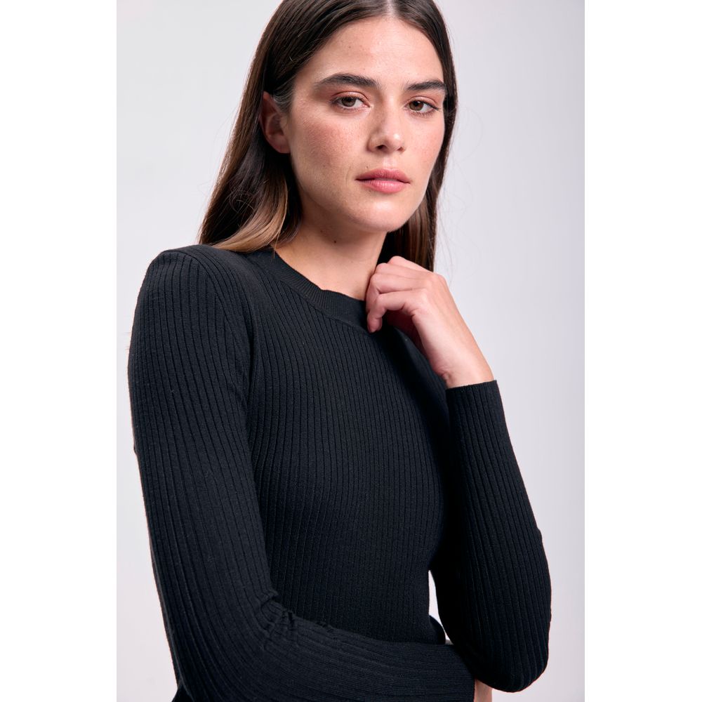 BUZO PUNTO CUELLO A LA BASE MANGA ANCHA NEGRO
