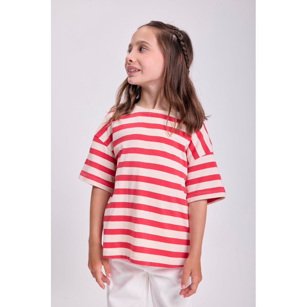 REMERA MANGA CORTA ESTAMPA RAYAS BONJOUR ROSA