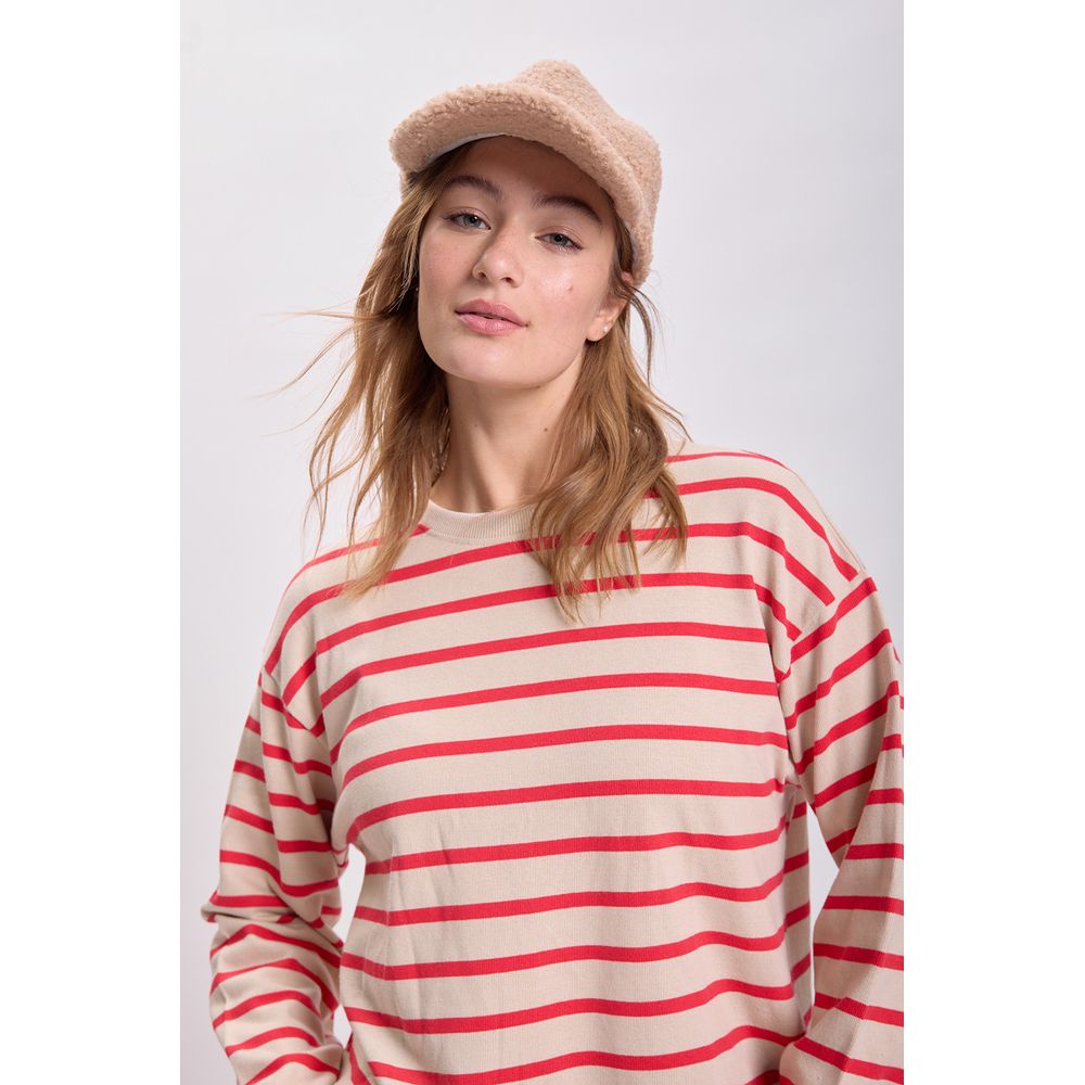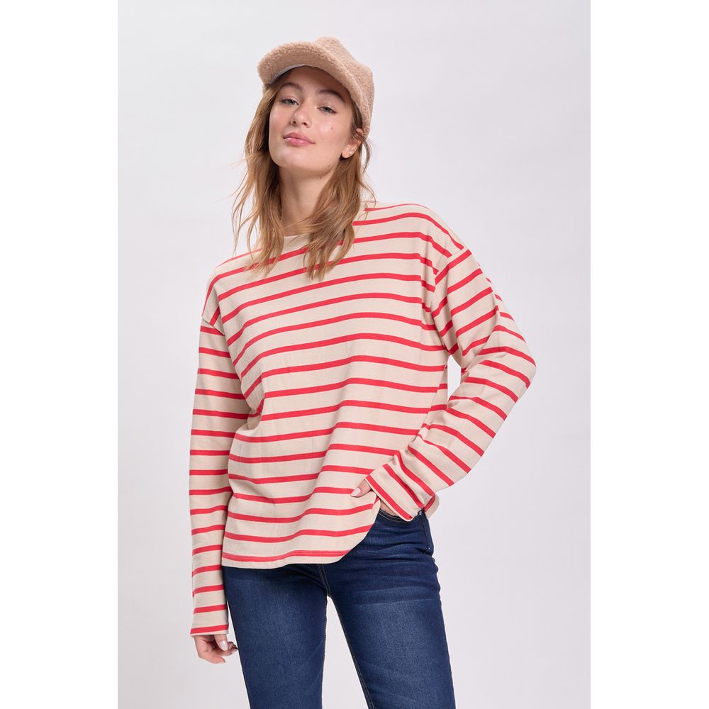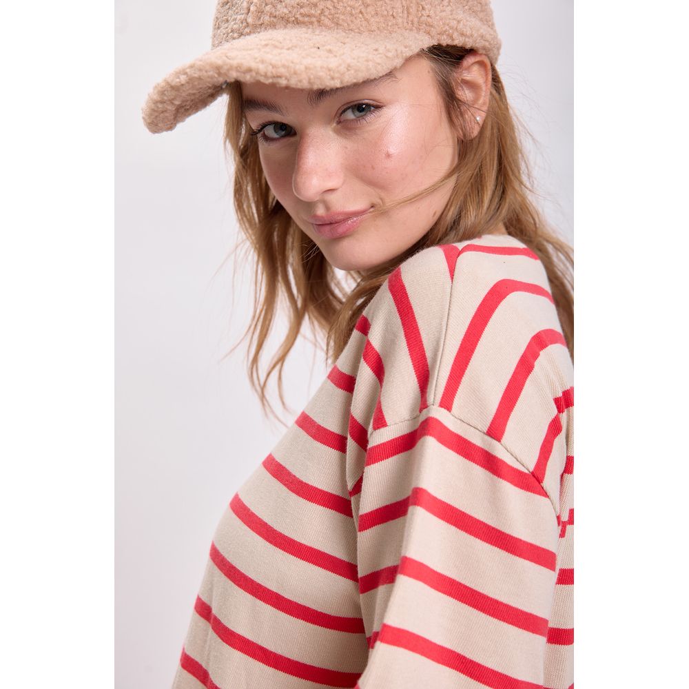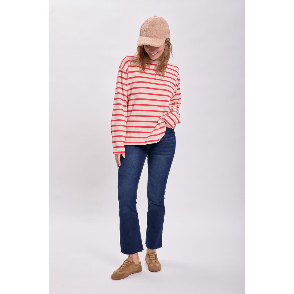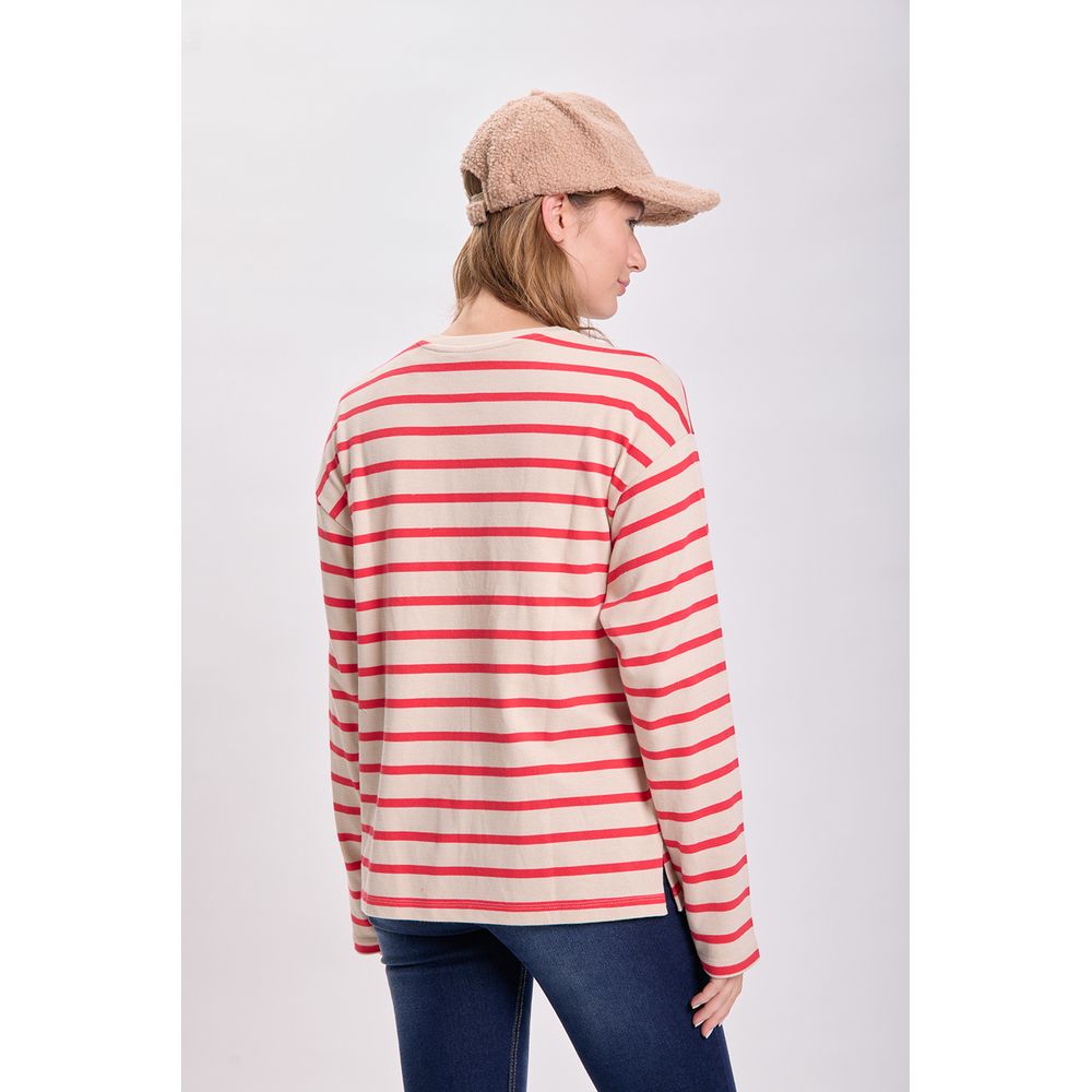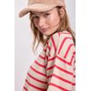 REMERA MANGA 3/4 CUELLO ALTO RAYADA ROSA