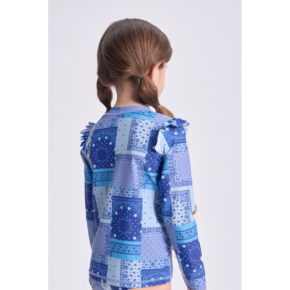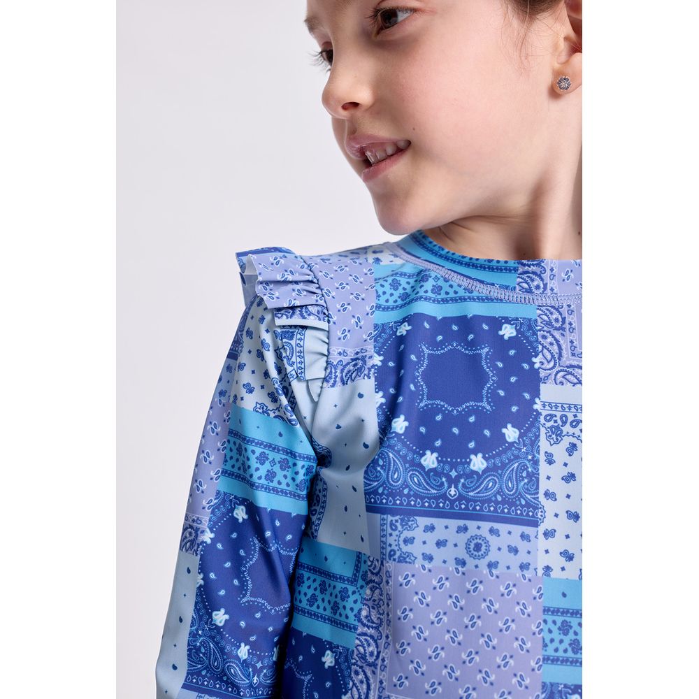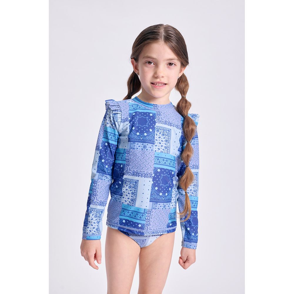 MALLA ENTERA MANGA LARGA UV ESTAMPA GIRASOLES CON SCRUNCHIE CRUDO