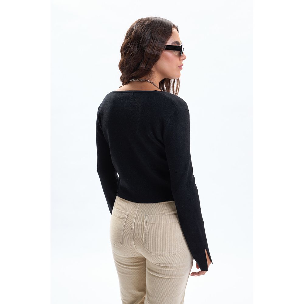 BUZO PUNTO CUELLO A LA BASE MANGA ANCHA NEGRO