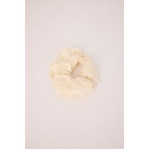 SCRUNCHIE DE TELA CON MOÑA ROSADA Y CRUDO