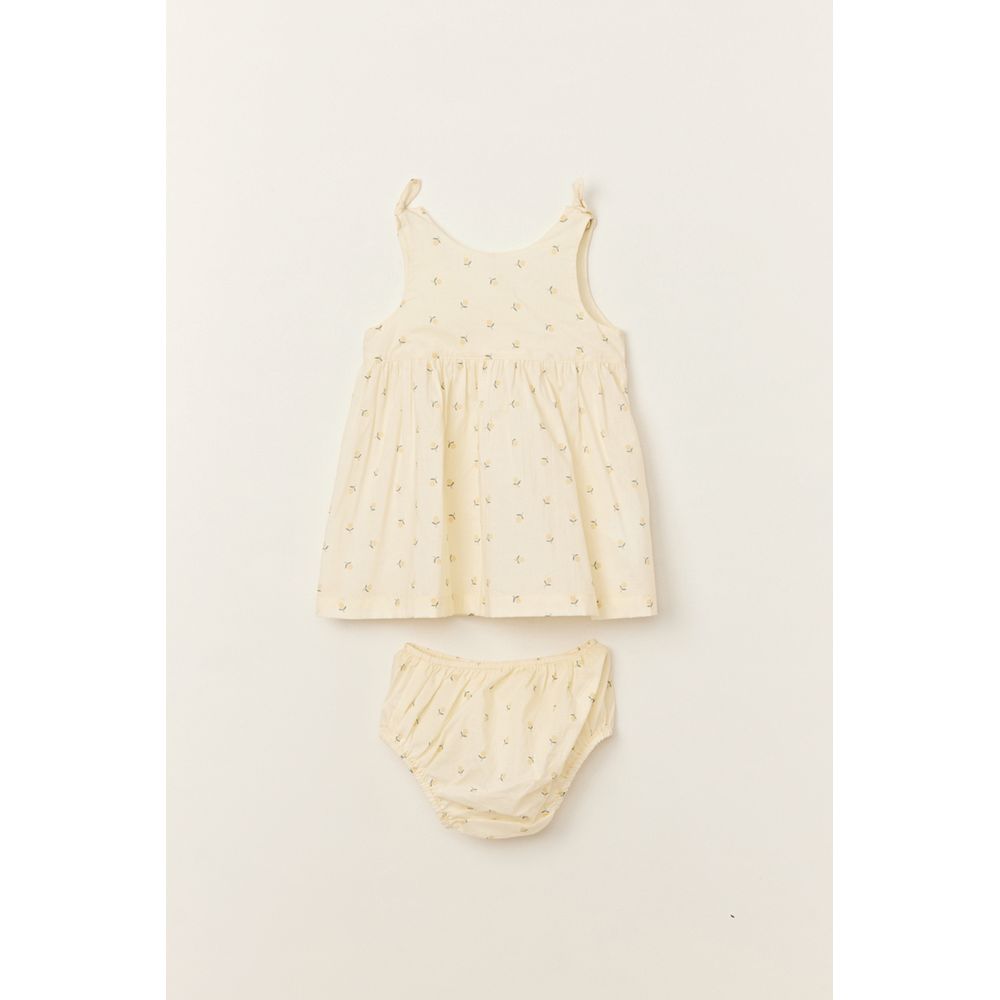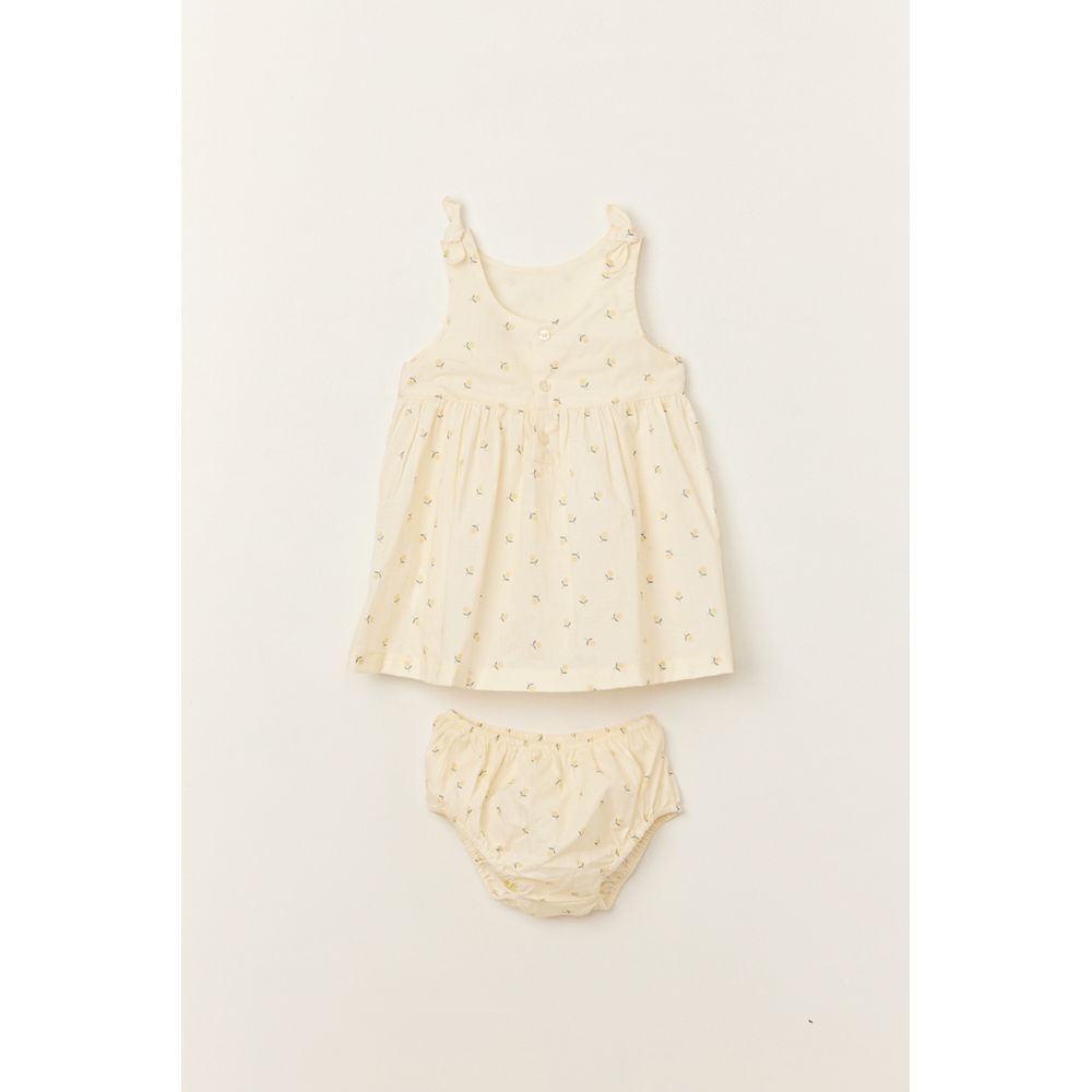 SET VESTIDO Y BOMBACHUDO ESTAMPADO FLORES AMARILLO