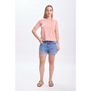 SHORT BAJO DOBLADO JEAN AZUL MEDIO