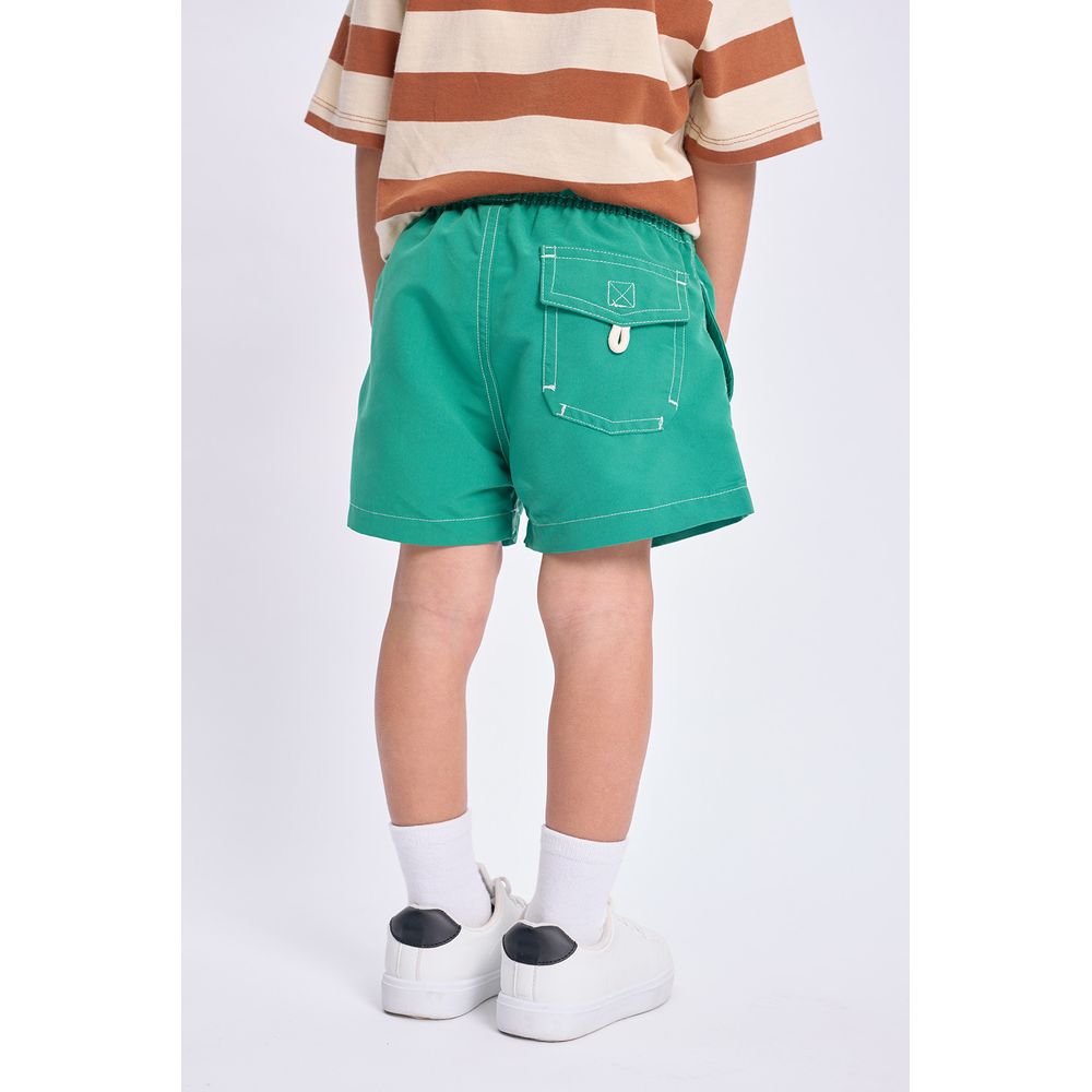 SHORT DE BAÑO PESPUNTES EN COLOR VERDE — EL MODELO ESTÁ USANDO EL TALLE 6