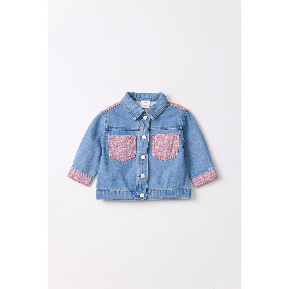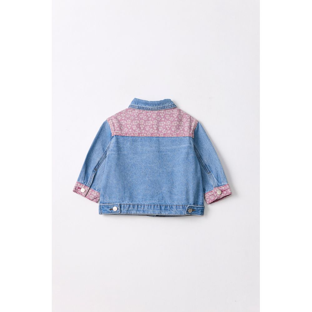 SOBRECAMISA DENIM RECORTES FULLPRINT FLORES AZUL CLARO:18/24m