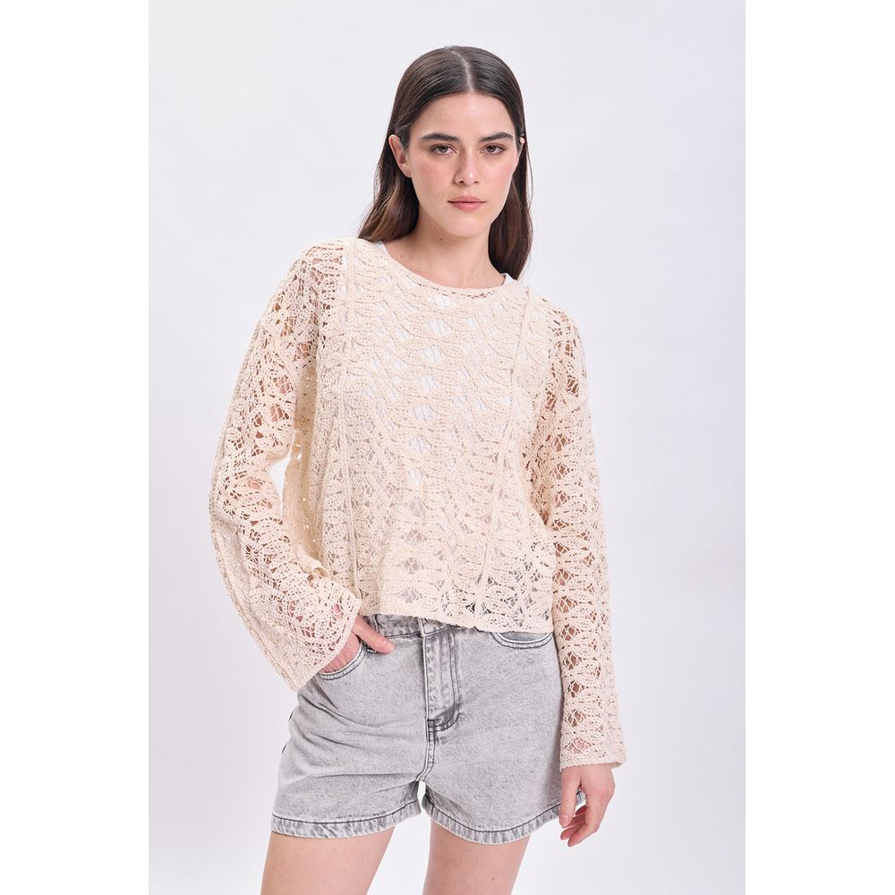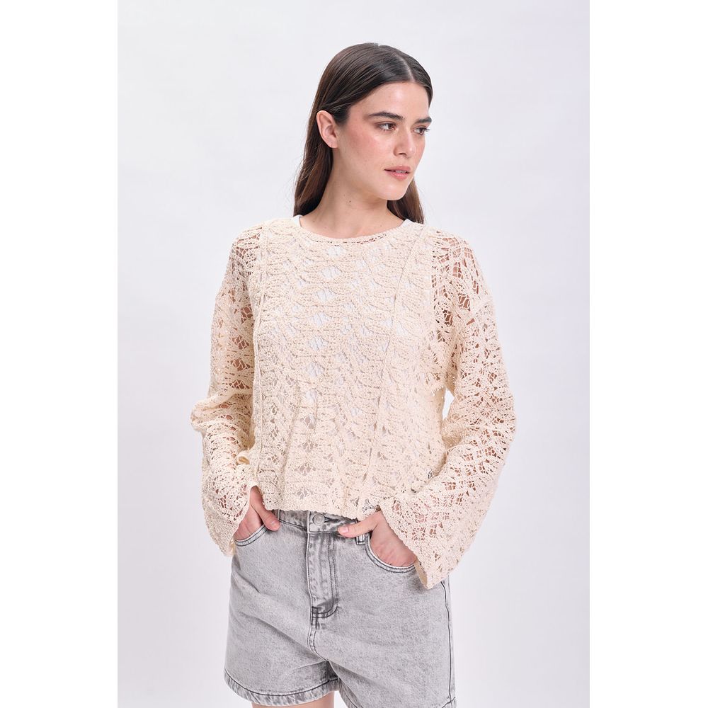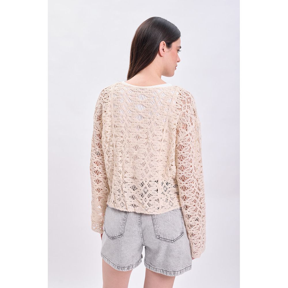 CARDIGAN PUNTO CROCHET AJUSTABLE CRUDO