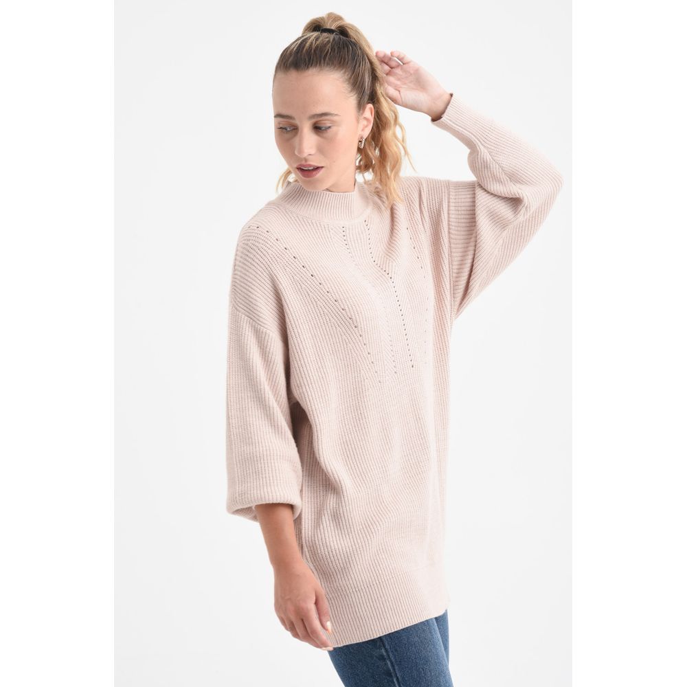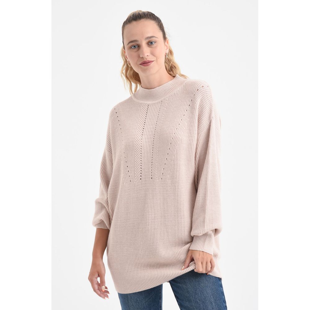 BUZO DE PUNTO FANTASIA CON ABERTURAS LATERALES CRUDO
