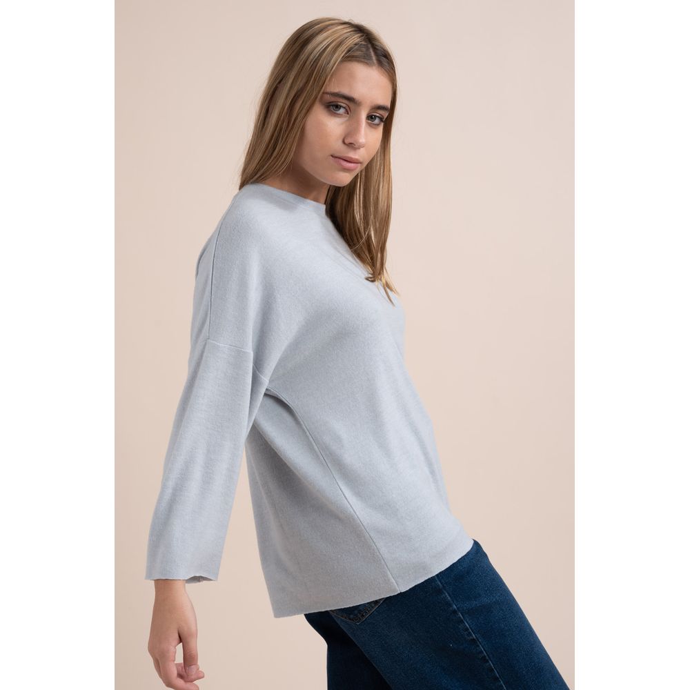 BUZO DE PUNTO CON TACHAS EN SISA GRIS
