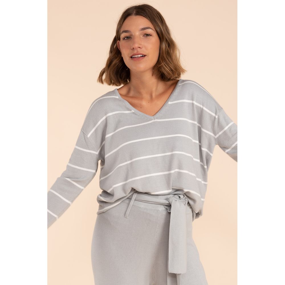 BUZO DE PUNTO FANTASIA CON ABERTURAS LATERALES CRUDO