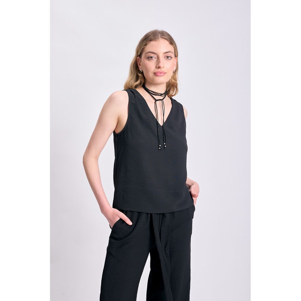 TOP SIN MANGAS LINO BOTONES LATERALES CRUDO
