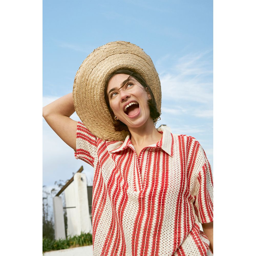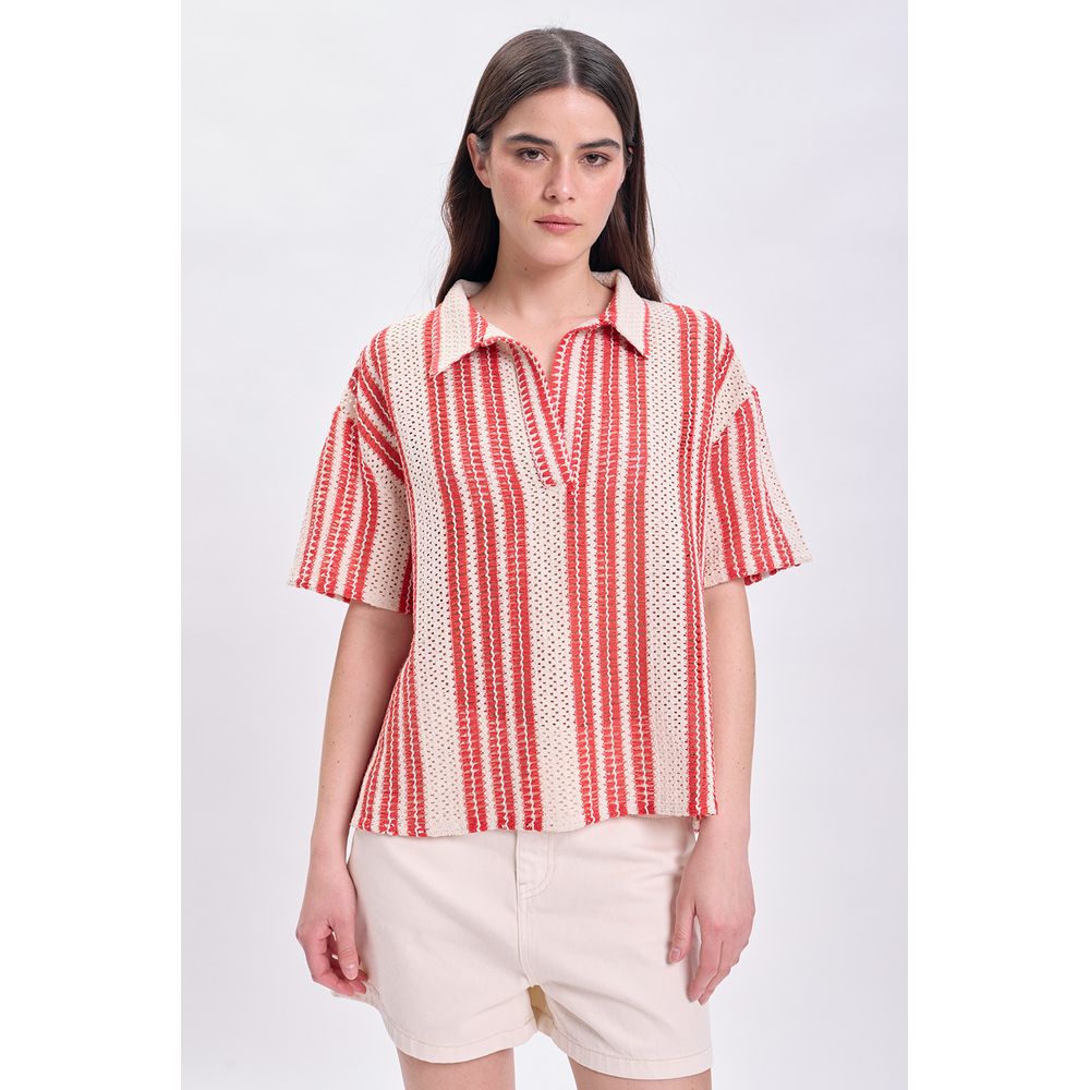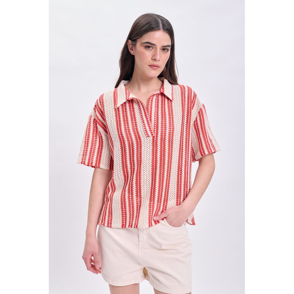 BUZO DE PUNTO FANTASIA CON ABERTURAS LATERALES CRUDO