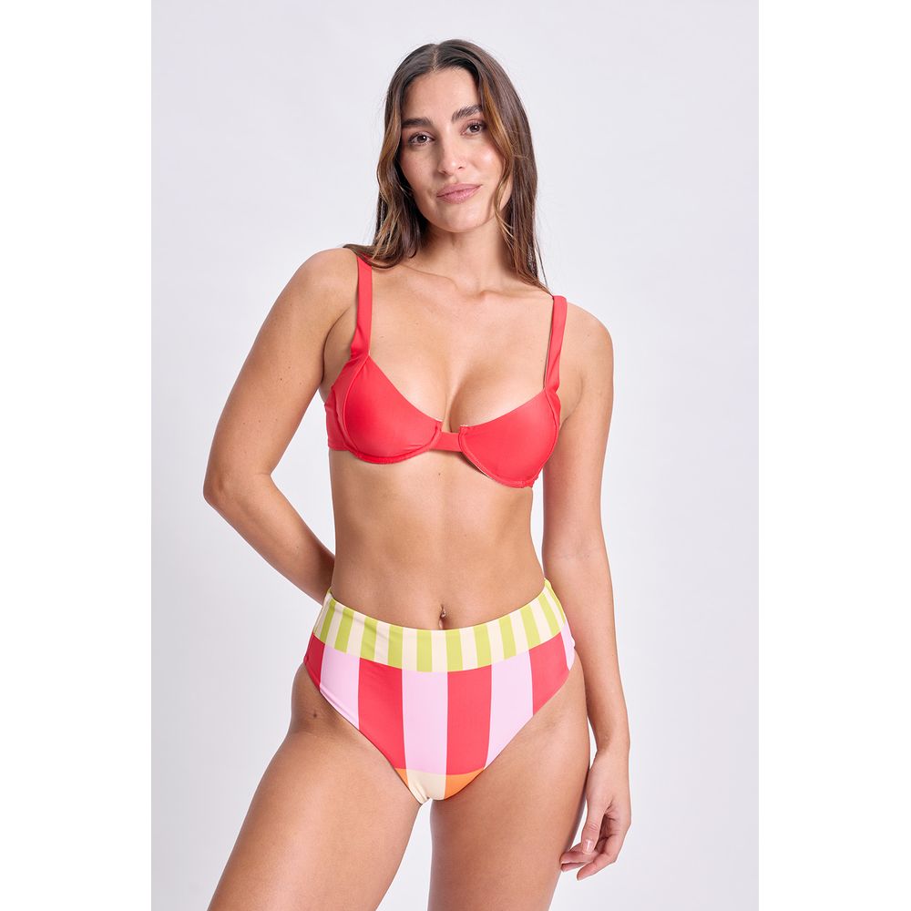 BIKINI TIRO ALTO ESTAMPADO RAYAS ROSA