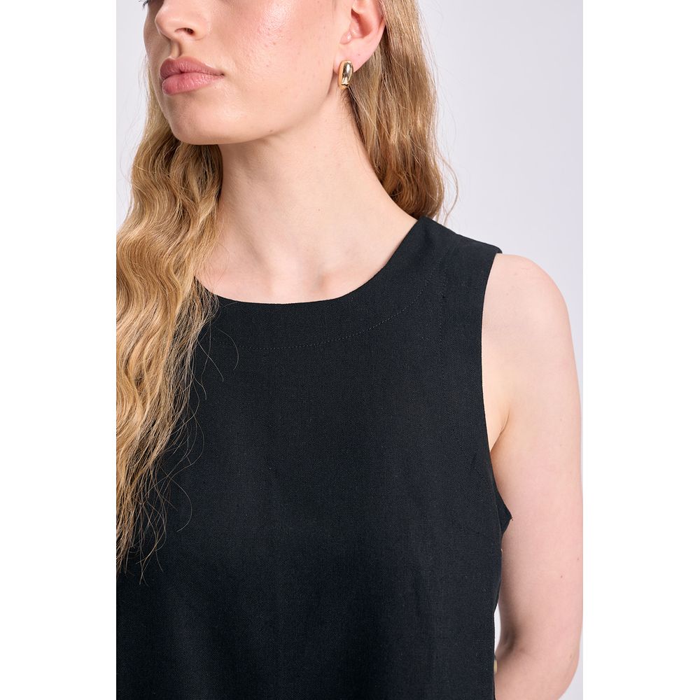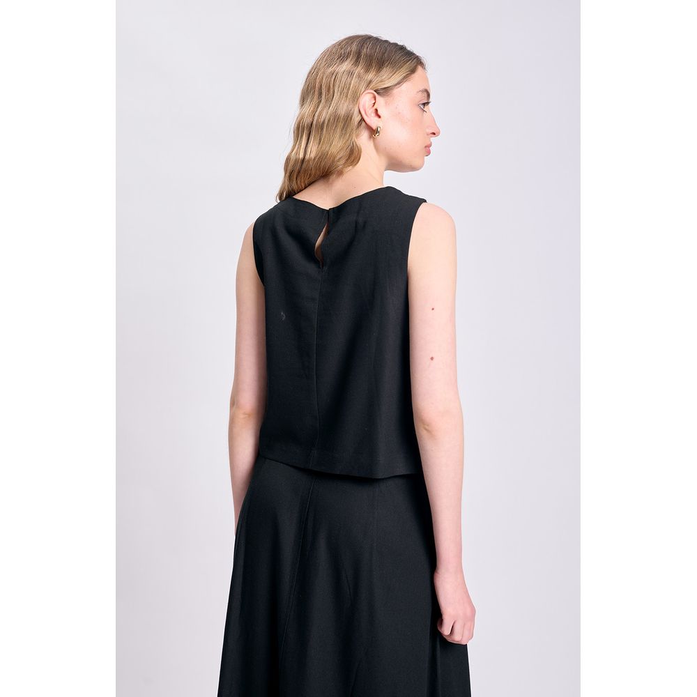 TOP SIN MANGAS LINO BOTONES LATERALES NEGRO