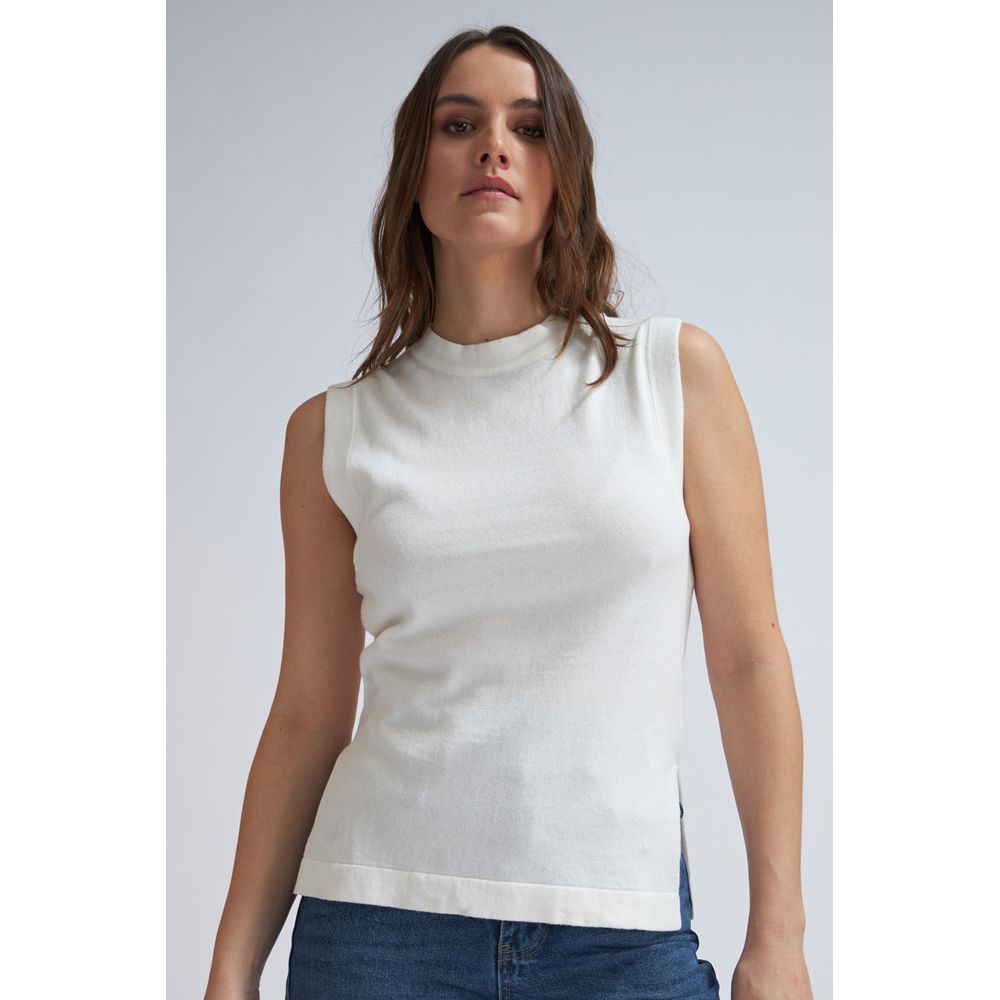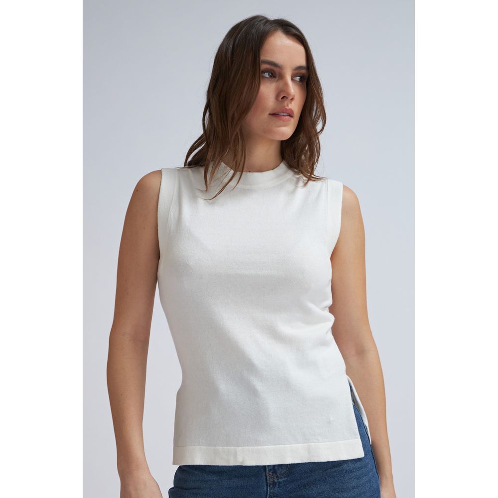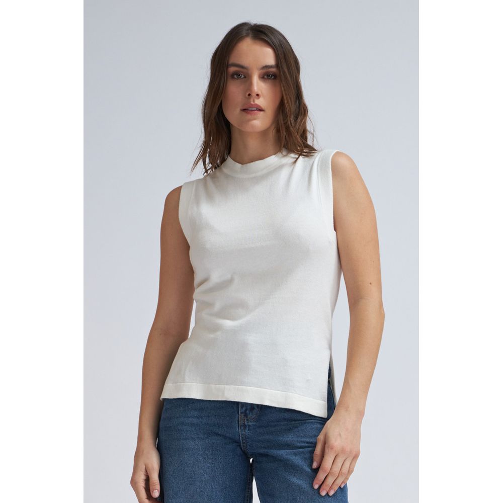 TOP SIN MANGAS LINO BOTONES LATERALES NEGRO