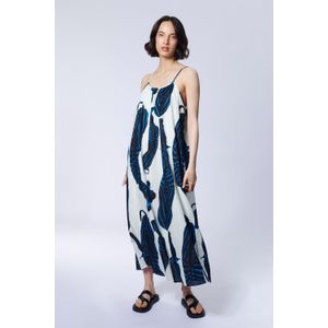 VESTIDO MANGA CORTA CUELLO V BOTONES ESTAMPA TRIBAL AZUL