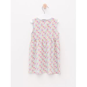 VESTIDO SIN MANGAS VOLADOS ESTAMPA FLORES CELESTE
