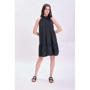 VESTIDO CORTO SIN MANGAS LINO VOLADOS NEGRO