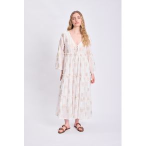 VESTIDO MANGA LARGA ESTAMPADO BEIGE CON CRUDO