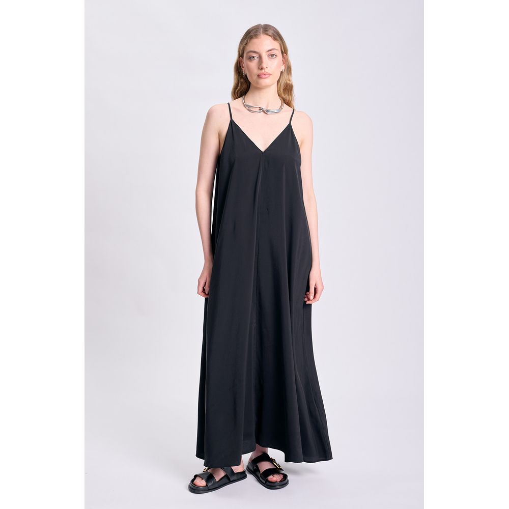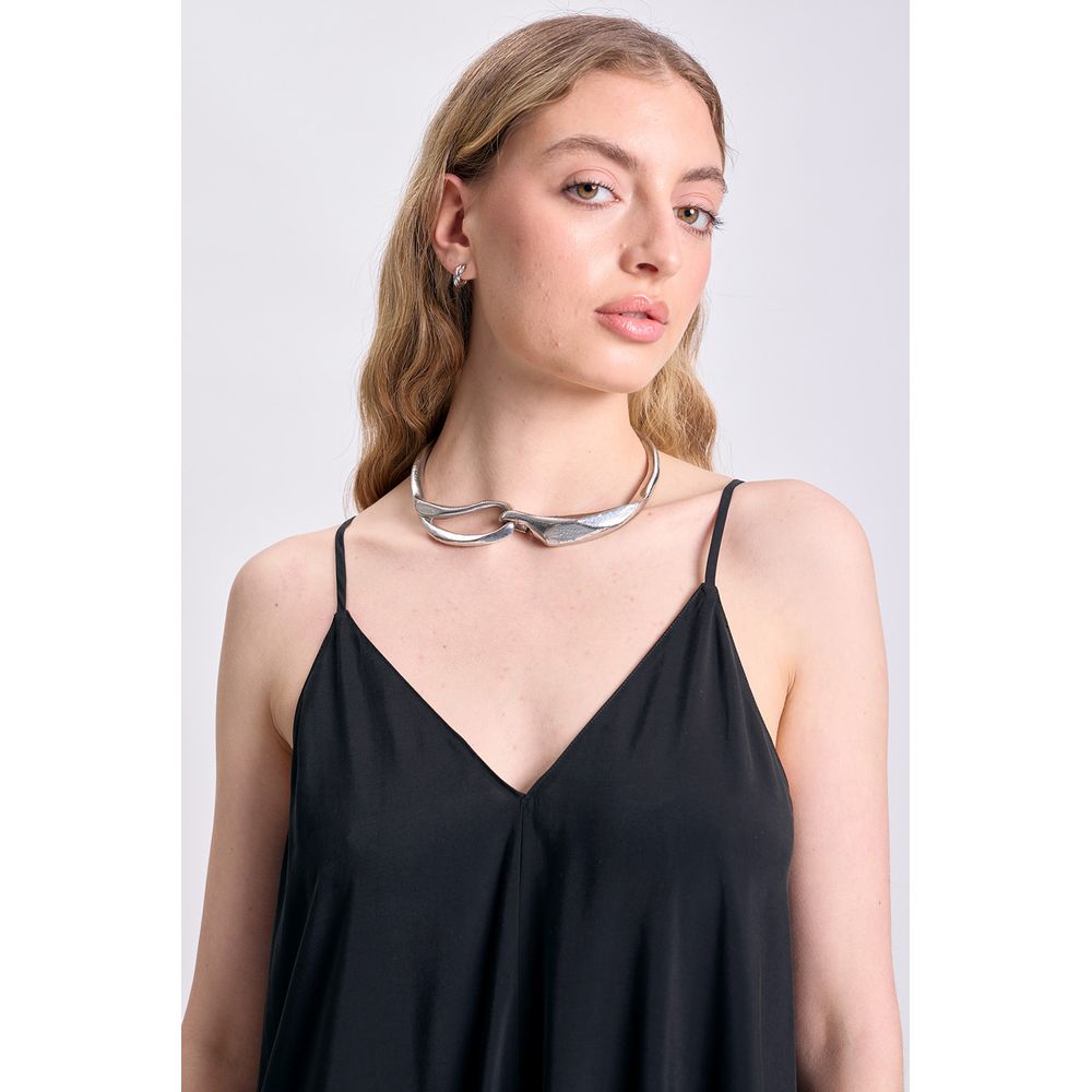 VESTIDO CORTO SIN MANGAS LINO VOLADOS NEGRO